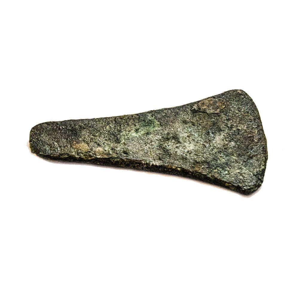 The earliest Bronze Age artefact found to date on the Island is a copper-bronze axe-head-shaped ingot which analysis suggests came originally from Ireland. Bronze and Iron Age artefacts have been found on Longis Common, and an Iron Age Pottery site has been identified immediately west of Longis Bay. Flints and axes from a Neolithic site in Alderney (4850 - 2850 BCE) are on display.